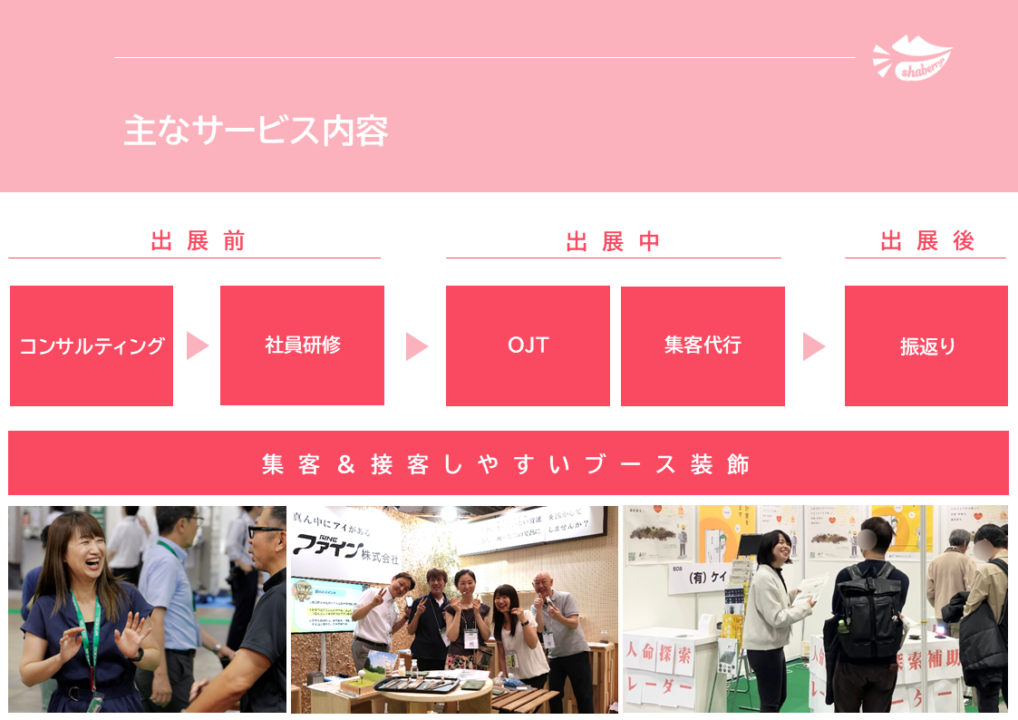 実際のブースに立ち接客やプレゼンテーションを代行しながらノウハウを培ってきました。